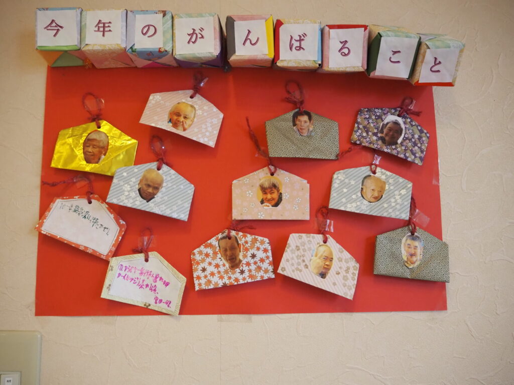 GH支援センター門司では新しい年を迎えてそれぞれやりたいことや年間で頑張ることへの思いを絵馬に託してもらいました。