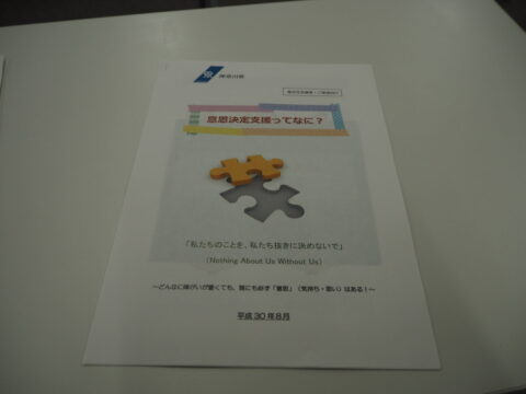 1月7日(金)、ぱすてる中部、グループホーム支援センター、ショートステイとばたと合同で「意思決定支援」の研修を開催し、資料をもとに読み合わせや事例を用いた個人ワークなどを行いました。