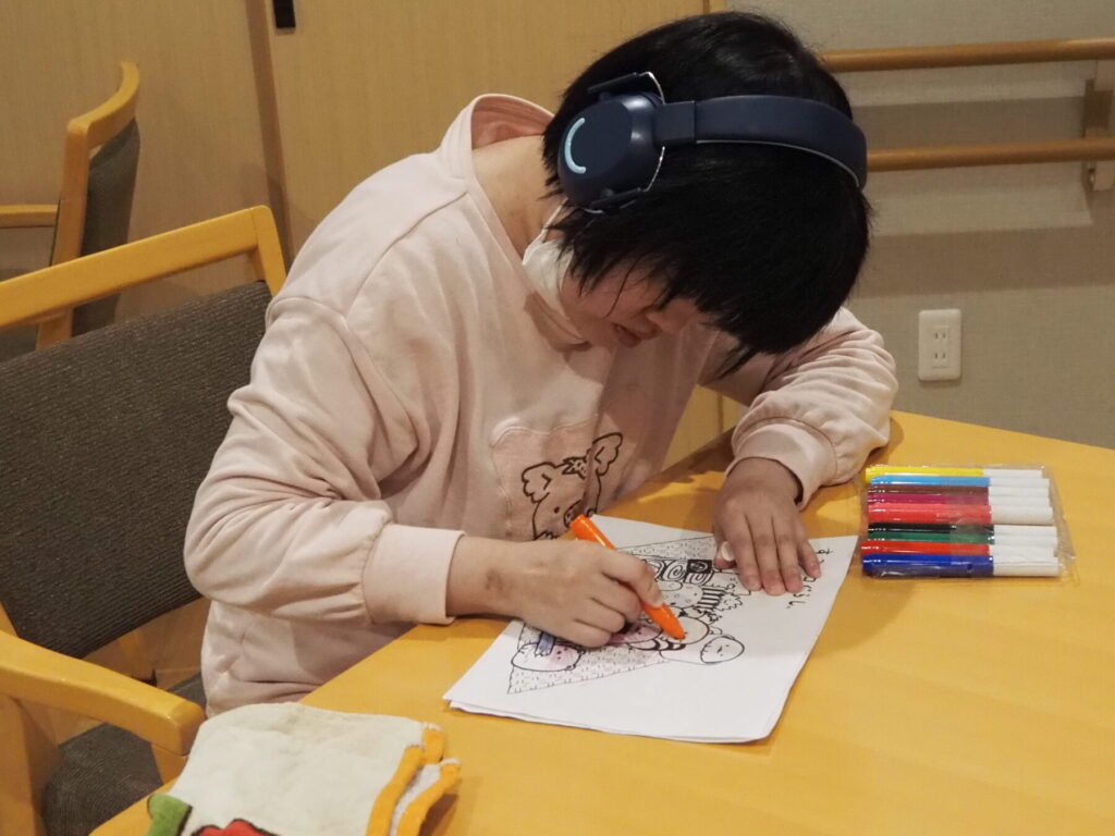 居室で自分時間を過ごすのも良し、フロアでみんなと会話をするのも良し、今回のように塗り絵やパズルをするのも良しです。これからも楽しく夕食後のひとときを過ごしましょう!☺
