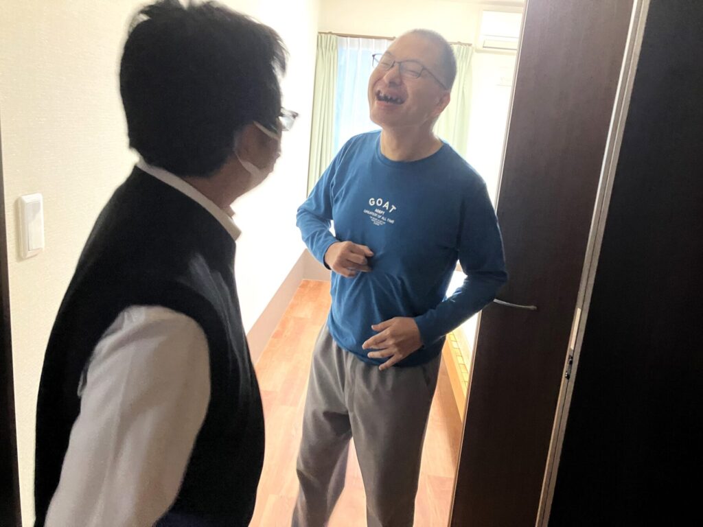 Sさんもその一人で、今回在宅からグループホームへの入居となりました。お会いした時、いつも表情豊かなSさんも暮らしの環境が変わっていくことに対し、不安げな表情を浮かべることがありました。Sさんが安心した暮らしを迎えるために、関係機関と協力し合いながら、必要なサービスを組み立てていきました。知らない場所でも慣れた人たちのサポートを受けながら、生活ができると実感したSさん。そのSさんのほっとした表情を見て、これからの生活を前向きに考えているような気がしてこちらもほっとしました。