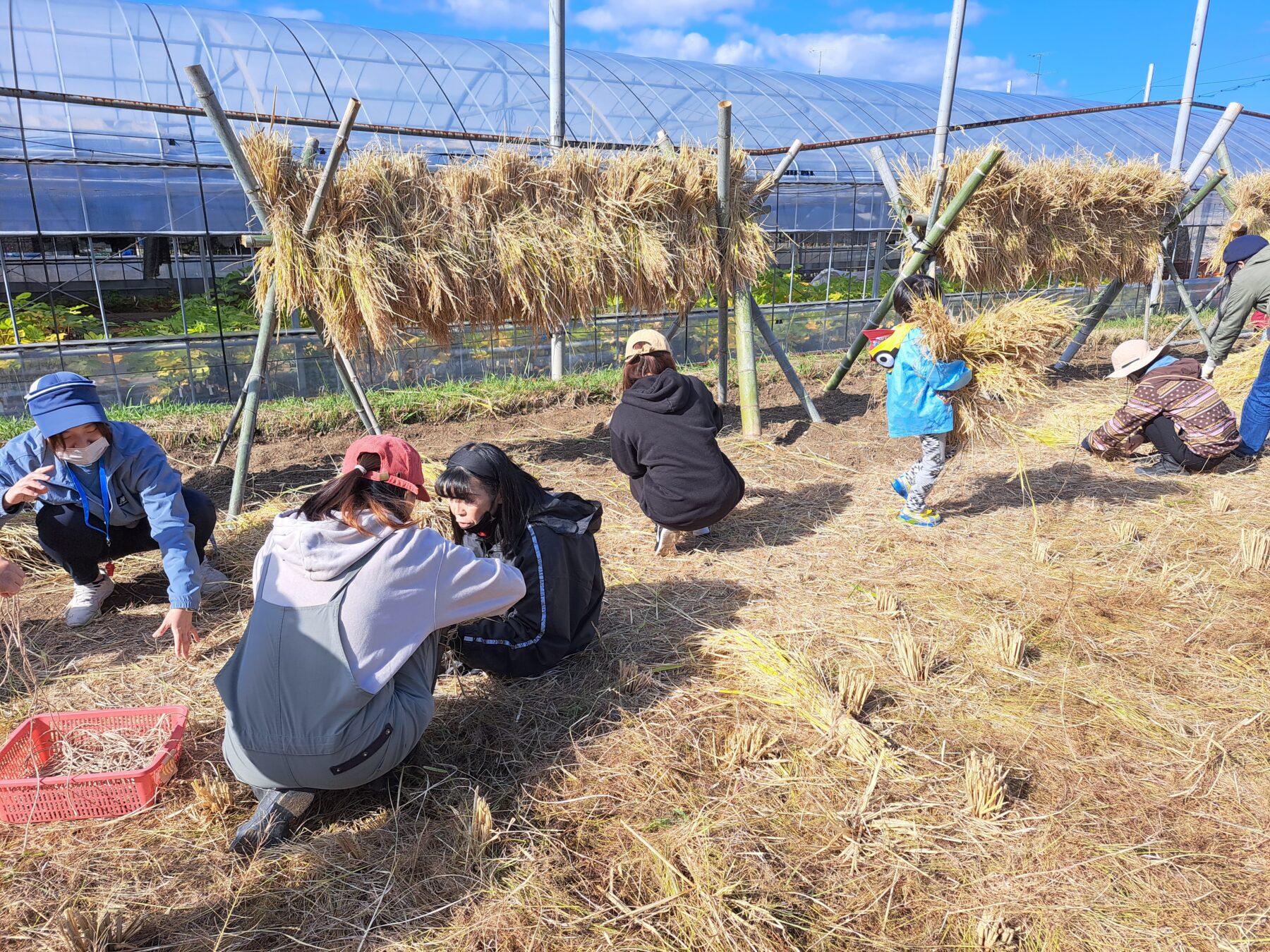 園児のみなさんは元気いっぱい\(^_^)/にしかつメンバーも負けじと張り切って稲刈りに参加しました。保護者の皆さんにもご協力頂き、たくさんの稲穂を園児と一緒に運び、無事収穫を終えました。