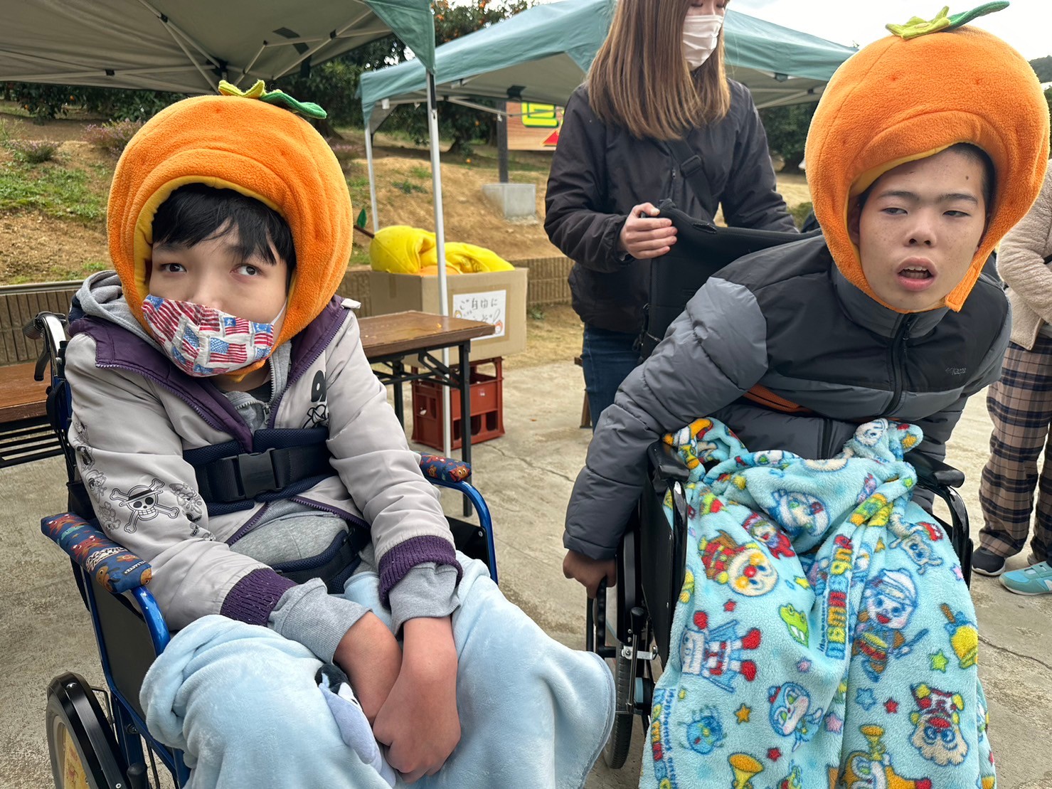 放課後等デイサービスでは、今年も2回に分けてミカン狩りに行って来ました。ジョイフルで、昼食を済ませてミカン園に到着すると、説明より早くミカン狩りをしたいHさん、ピンクのリボンを目印に、葉っぱでミカンが隠れていても何のその。ミカンを見つけてはハサミで「チョキン」。一番先に袋いっぱいになって集合場所で待っていました。2回目は、今年高等部を卒業するNさんとYさんは、外出活動を楽しみにしていました。食事を楽しんだり、被り物を被ったり、手が届く所にミカンがあり外気に触れて、とても気持ちが良い1日を過ごしました。
