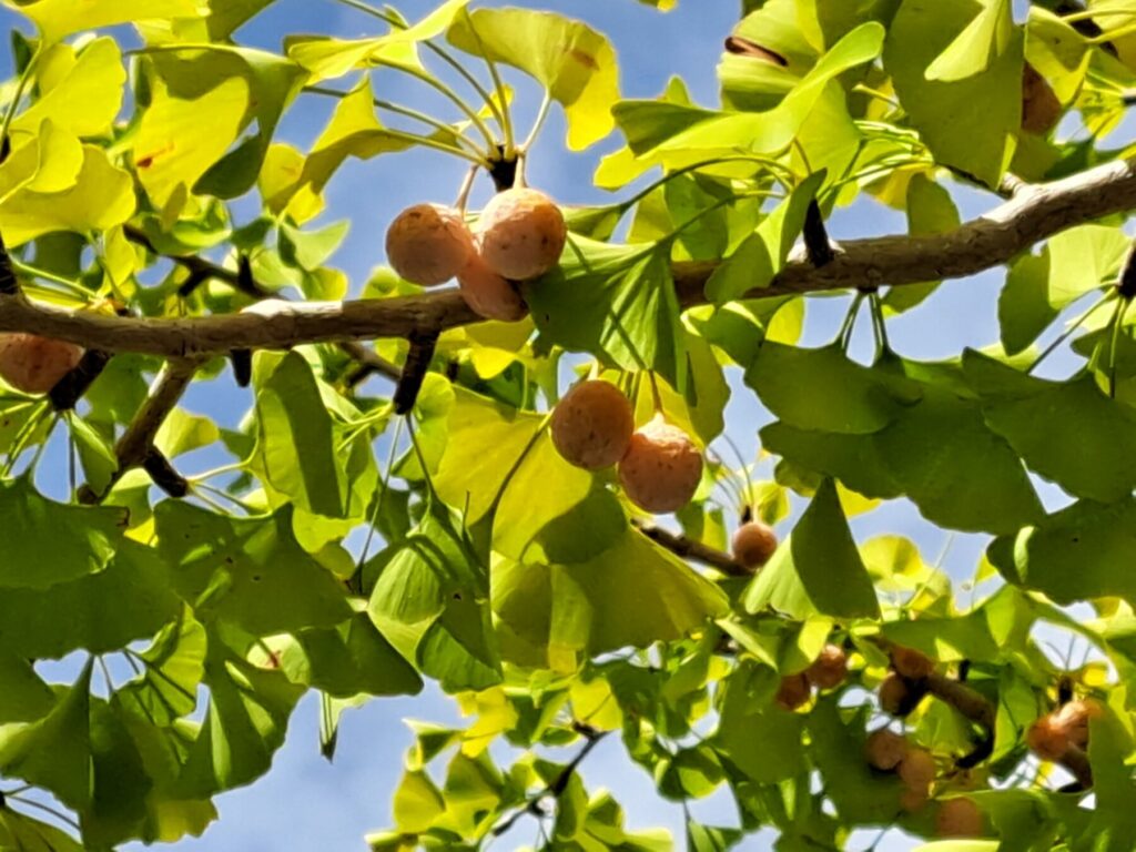 お隣の香月中央公園では、銀杏の樹が黄色く染まり始め、遊歩道に落ちたぎんなんが独特の香りを放ち始めました(^_^;)