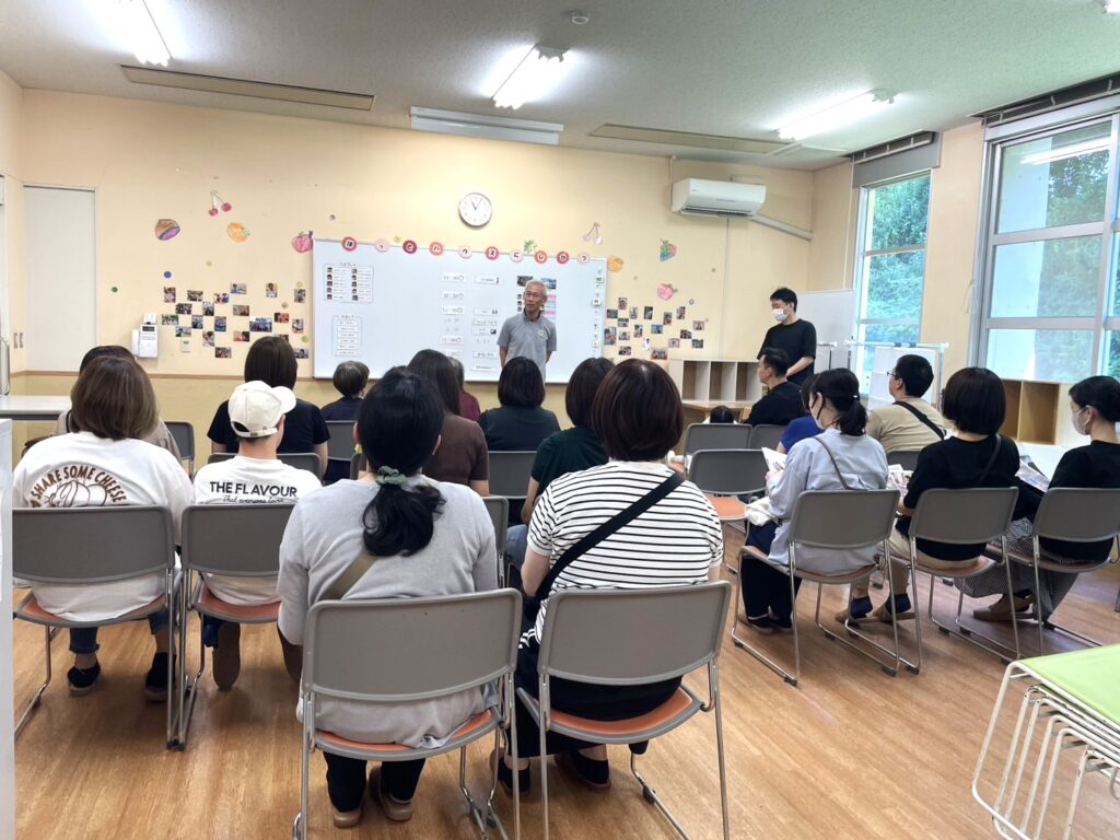 ほっとハウスにしかつでは、今年度1回目の家族交流会を実施しました。以前より、ご家族から卒業後の事についての相談が多くあったため、今回の交流会はにしかつの就労継続支援B型事業と生活介護事業について、それぞれのサービス管理責任者から説明を行ってもらいました。利用者のご家族13名、にしかつの利用者以外のご家族も6名お越し頂き、合計19名の方にご出席頂きました。