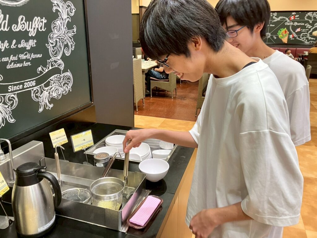 ほっとハウスにしかつでは、秋休みにバイキングに行きました。バイキングに行く前から「ラーメン作りたい!」「楽しみ!」などとワクワクしている様子。