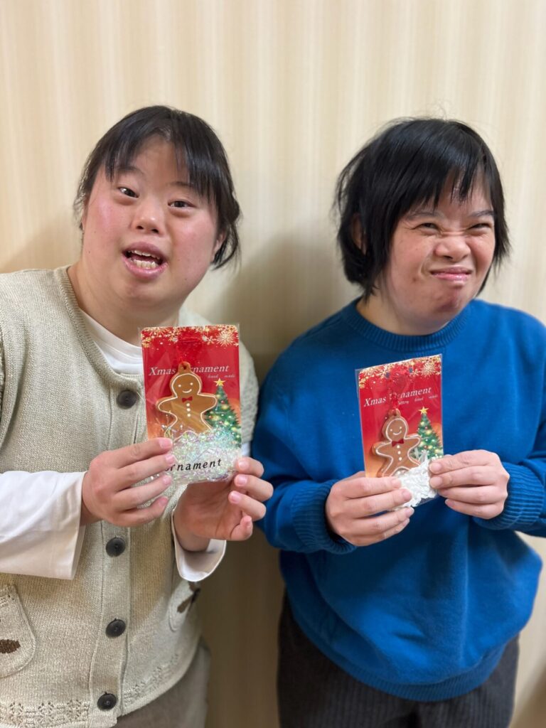 小倉北区の紫川親水広場・船場広場で『KOKKURA CHRISTMAS MARKET&CASTLE(小倉クリスマスマーケット)』が11/21(金)~12/25(木)の期間に開催されており、イルミネーションが街中を色とりどりの光で輝かせています。販路拡大と工賃の向上を目的として、第一弾の小倉城お土産処『しろテラス』に続き、第二弾は小倉クリスマスマーケット内で各障害者施設が製作した自主製品が販売されています。インクル八千代も参加しており、クリスマスにちなんだ陶器製のクッキー型ジンジャーマンオーナメントを販売しています。先日は、事業を代表して2名の方と販売風景の見学に出かけました。たくさんの商品の中から「これ!あったよ♪」と自身の商品を見つけ、嬉しさが溢れます。皆さんのクリスマスにそっと寄り添えるような温かみのある製品になりました。