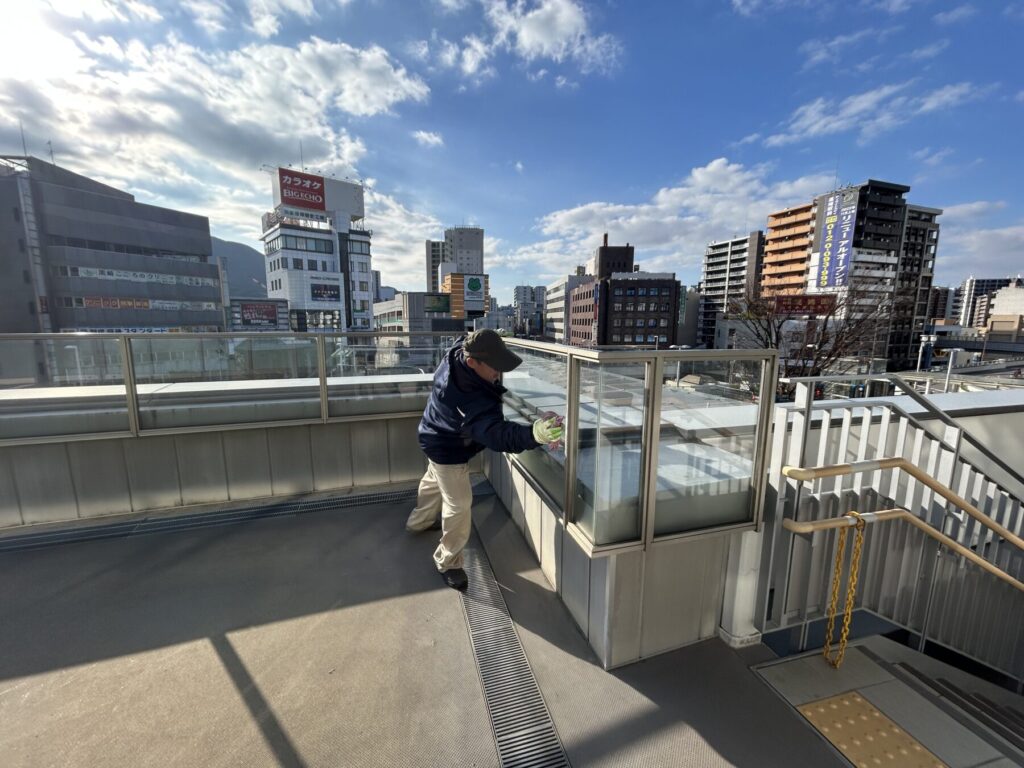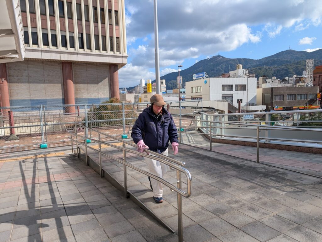 令和元年から続けてきた、黒崎デッキの清掃作業が終了を迎えました。屋外での作業は、暑さや寒さなど大変なことも多くありましたが、皆さんで声をかけあいながら取り組んできました。作業中に通行人の方から、「ありがとう」「頑張ってね」と温かい言葉をいただくこともあり、その言葉が大きな励みとなりました。また、企業の方からの感謝や温かいお言葉は、大きな自信と力になりました。4月からは、新しい施設外就労の作業が始まります。この7年間で得た経験と想いを胸に、これからも一歩ずつ成長していきたいと思います。お世話になった企業の皆様、これまで本当にありがとうございました。