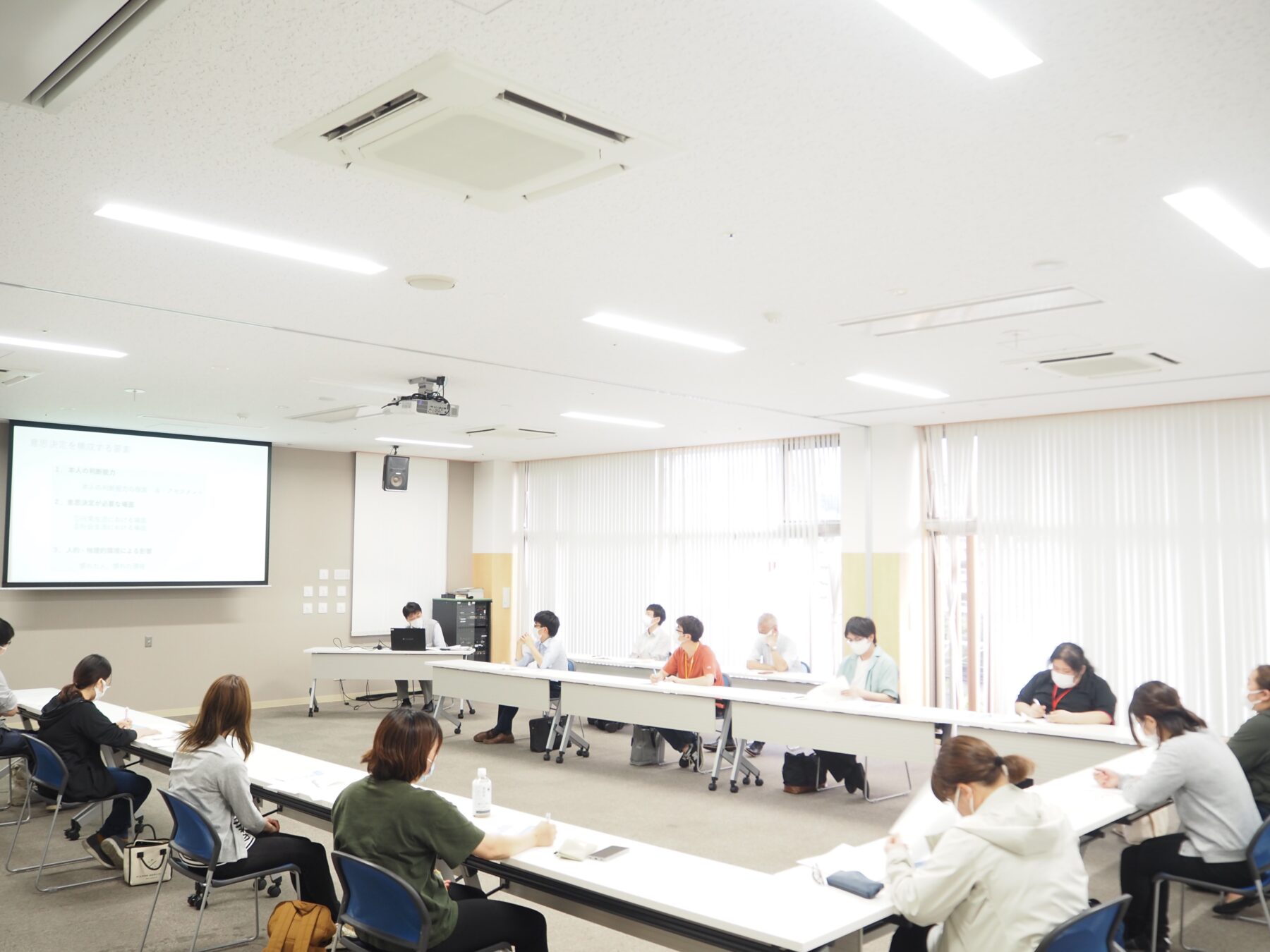 第1回「意思決定支援あり方検討会」が6月23日、戸畑区の「育成会会館」で行われ、小松啓子理事長(オブザーバー)、石崎博之事業所長(委員長/すてら)のほかメンバーら17人が参加した(写真)。