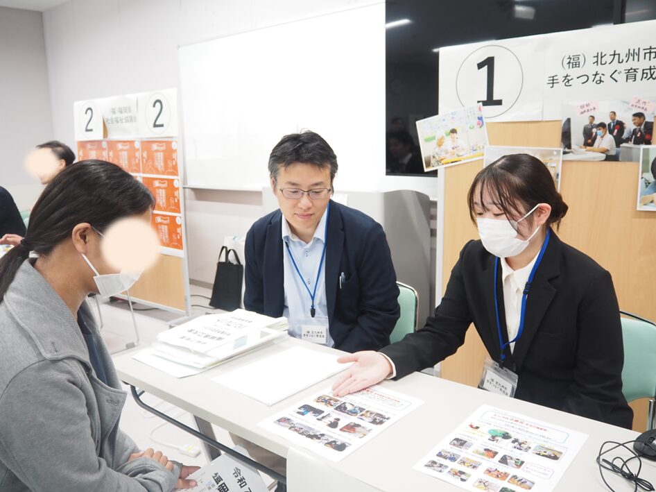 同セミナーは、同大学が就職・キャリア支援として学生に一般企業、官公庁、病院、施設などと直接、話せる場を設け、各業界や職種についての理解を深めてもらうことを目的に開催。対象は全学年の学生、院生。この日は、法人育成会を含め20社以上が参加し、学生はそれぞれの企業ブースで担当者と直接、話しを行った。法人育成会からは経営管理部人事・キャリア支援課の小川洋平課長、職員のほか、同大学卒業生で今年度入職したインクル小倉北の職員も参加。法人の事業内容やジョブローテーション等の人材育成の取り組みなどを紹介した。法人育成会のブースには、障害者福祉の分野に携わりたいと考えている学生や興味がある学生などが訪れ、熱心に説明に聞き入っていた。