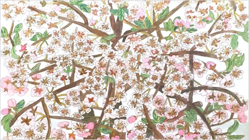 今年度の同芸術祭のテーマは「私は芸術家!」。自由な発想でそれぞれのアートを楽しみながら描いた作品(絵画、写真、書道、手工芸など)が募集され、今年度は247点の応募があった。その中から「北九州市長賞」1点、「(公財)北九州市身体障害者福祉協会 理事長賞」5点、「北九州市障害者芸術祭 実行委員長賞」6点が選ばれた。今回、見事、実行委員長賞に輝いた大塚さんの作品名は「中島千波流枝垂れ桜」。個人で出展した大塚さんは作品エピソードとして、「学園大通りに咲いた枝垂れ桜は、中島千波さんみたいにして描きました。花びらが吹雪のように『チラチラ』と、舞い上がりました」と記載している。同じく実行委員長賞を受賞した友近さんの作品名は「カラフルインコ」。作品についてインクルとばた 昭和事業所は、「細やかで力強い線画、色鮮やかな色彩、そこから生み出される自由な世界。友近さんの豊かな芸術性を感じさせる作品となりました」と説明。同芸術祭の作品展は、12月2日から同7日まで「黒崎市民ギャラリー」(八幡西区黒崎3-15-3 コムシティ3階)で開催される。