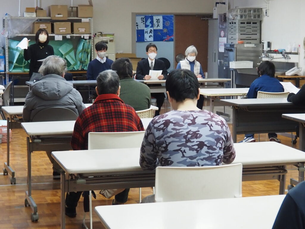 苦情解決委員会では、平成15年から苦情解決制度の啓発、苦情の掘り起こしを目的に苦情解決委員が直接、各施設・事業所等を訪問し利用者、家族会と懇談会を実施。コロナ禍で一時中断していたものの利用者から要望があり、令和4年度より再開している。この日は、第三者委員の木村由美子委員(北九州市手をつなぐ育成会 親の会 事務局長)、法人委員の阿髙和憲委員(内部理事)、山海正利委員(内部理事兼飛翔館 施設長)らが参加、利用者15人と懇談した。懇談会では施設内、施設外就労での作業のことや給食のことなどについて和やかな雰囲気で話しが行われ、最後に委員から困っていることなど何かあれば苦情解決制度を活用してほしいと伝えられた。