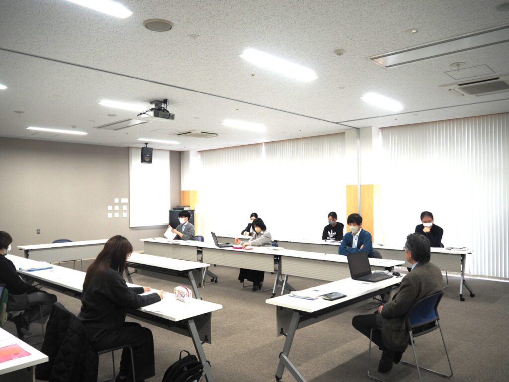 第5回「実践研究推進委員会」が2月5日、戸畑区の「育成会会館」で開催され、小松啓子理事長(オブザーバー)、鈴木克之理事(委員長/経営管理部 経営戦略課 課長兼任)はじめメンバーら12人が参加した(写真)。