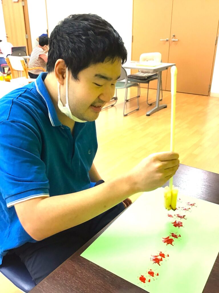 北九州市では、障害のあるクリエーターらの活躍の場を広げて収入アップに繫げようと商品開発や販路拡大などを後押しする事業「NUKUMORI PLUSプロジェクト」を実施。その一環としてアート作品を市内ホテルへレンタルする事業が行われることとなり、インクル八千代も参加していたが、選定の結果、同事業所より橋本洸紀さんの絵画作品1点が選ばれた。