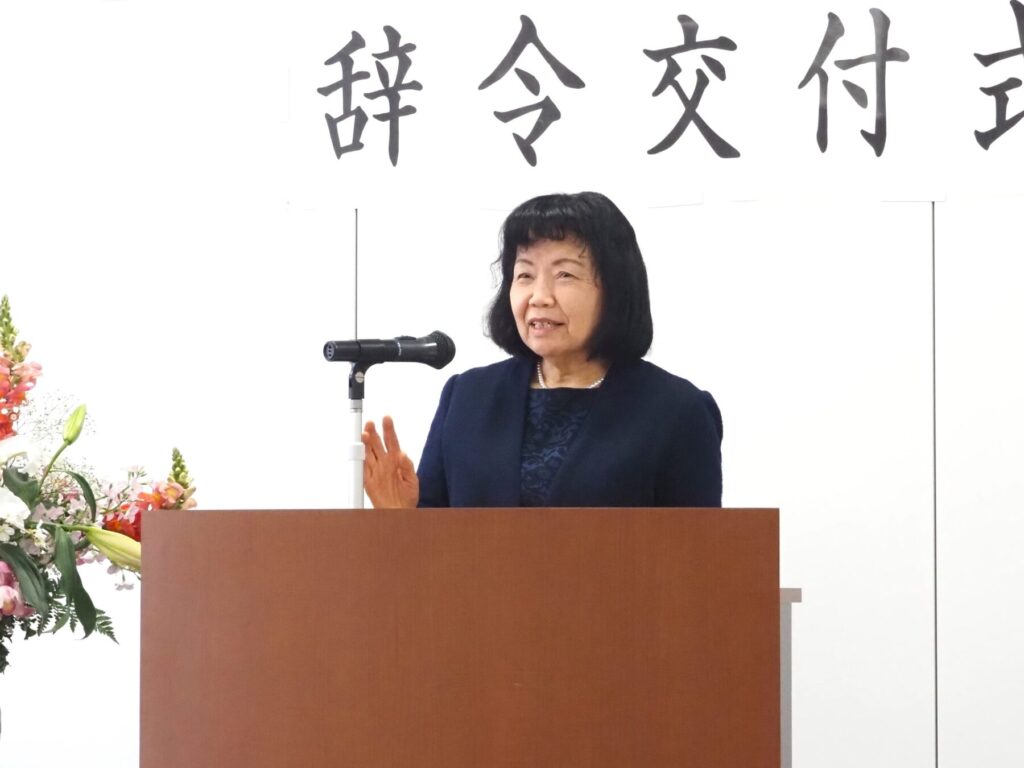 この日、5人は小松啓子理事長から辞令を手渡され、「未熟な点も多いと思いますが、少しでも早く仕事を覚えて皆様の力になれるように頑張りたいと思います」「利用者さんやご家族が安心して生活できるような支援をしていきたいと思います。精一杯、頑張ります」など一人ひとり決意を披歴。小松理事長からは「皆さん方は法人育成会の職員としての第一歩をスタートすることになりました。これからいろいろな利用者さんに出会っていきます。新たな環境へのチャレンジに不安もあるのではないでしょうか。その不安感はとても大切です。不安感がモチベーションを高める第一歩となります。不安を解消するために『もっといろいろなことを吸収したい』『勉強しよう』と、自分のモチベーションを高めていくからです。いま緊張感や不安感があるのは、モチベーションが高い自分がいると思ってください」と言葉が贈られ、法人の理念、ビジョンが紹介された。このなかで小松理事長は、「社会福祉法人北九州市手をつなぐ育成会では、利用者さんの想いを大切にし、利用者さんの無限の可能性を信じて『利用者ファースト』の姿勢で共に未来を創っていきます」と理念を紹介したほか、取り組みの3つの柱やビジョンについても丁寧に説明。最後に、「ワンチームで法人の運営をしたいと願っております。一緒に社会福祉法人北九州市手をつなぐ育成会をつくっていきましょう」と呼び掛けた。