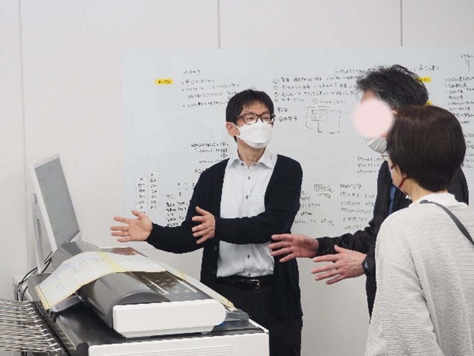 (写真左は右の、写真右は左のふたりが最終日にデジタル化事業担当職員から説明などを受ける「デジタルラボえどがわ」の職員)